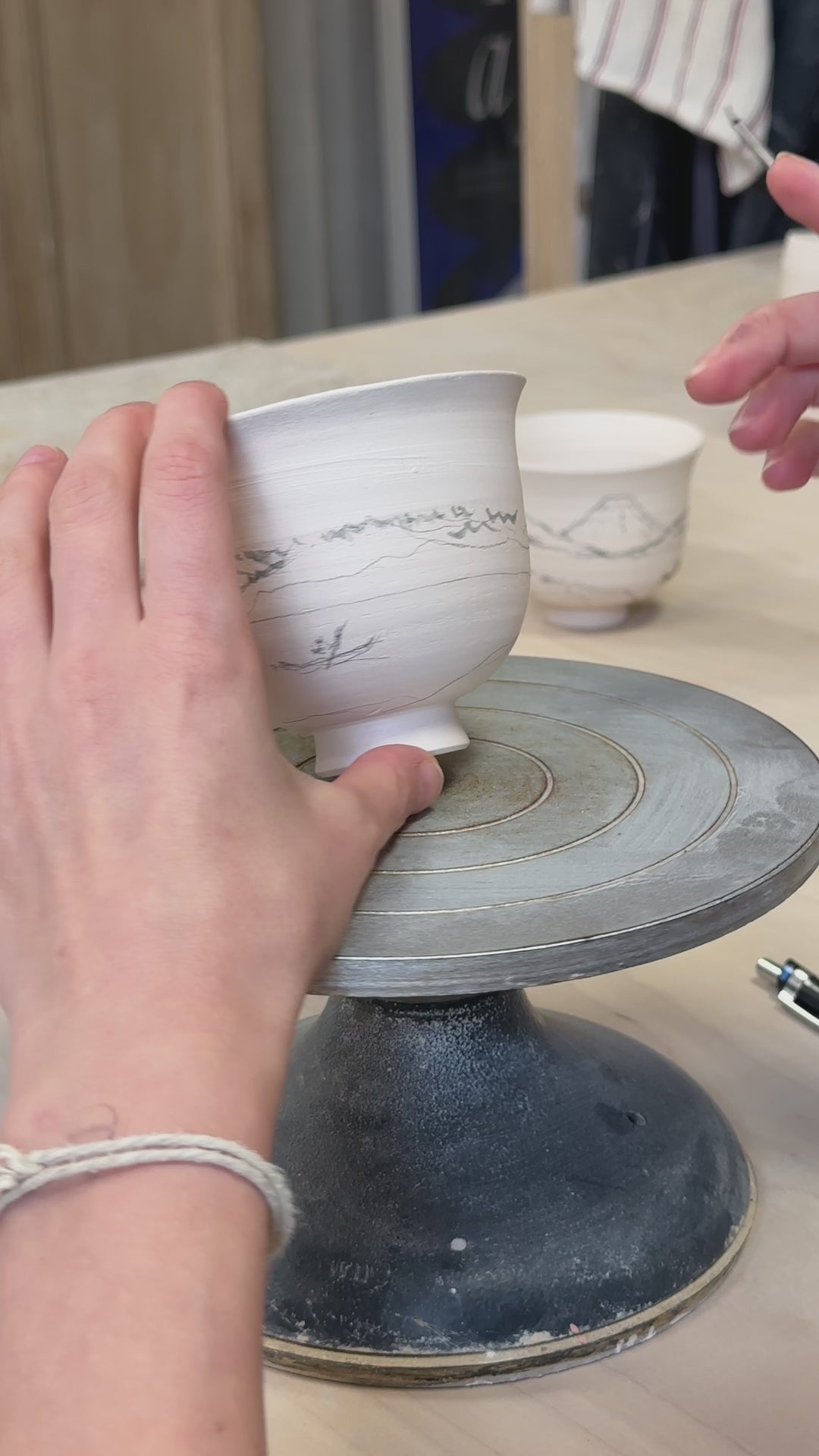 Fuji koppen er frihåndsmalet med et motiv af Fuji-bjerget, inspireret af kunstneren Hiroshiges klassiske træsnit.